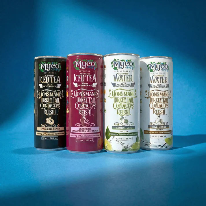 Lemon Lime Seltzer – Purified water, Organic Cane Sugar, Proprietary Mushroom Bio-Blend (Reishi, Lion’s Mane, Turkey Tail, Cordyceps), Natural Lemon-Lime Flavor, Citric Acid*, Cultured Dextrose*, Maca Root*, Ashwagandha*, Potassium Citrate*, Monk Fruit, Himalayan Salt, Nisin*.